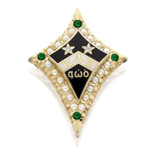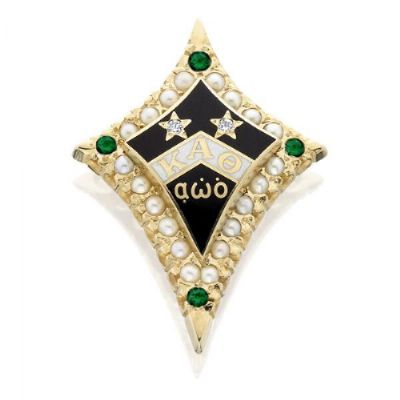 The official Kappa Alpha Theta badge with a pearl and synthetic stone border. Wear it with pride!