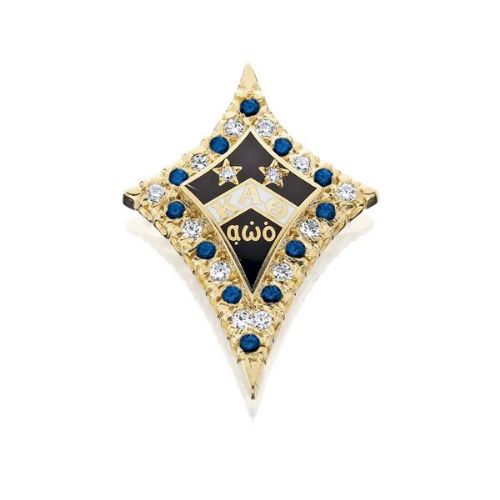 The official Kappa Alpha Theta badge with a diamond and synthetic stone border. Wear it with pride!