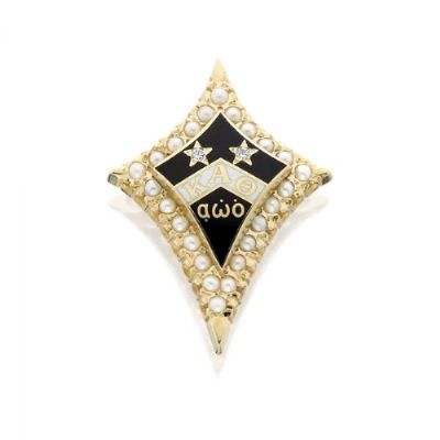 The official Kappa Alpha Theta badge with a pearl border. Wear it with pride!